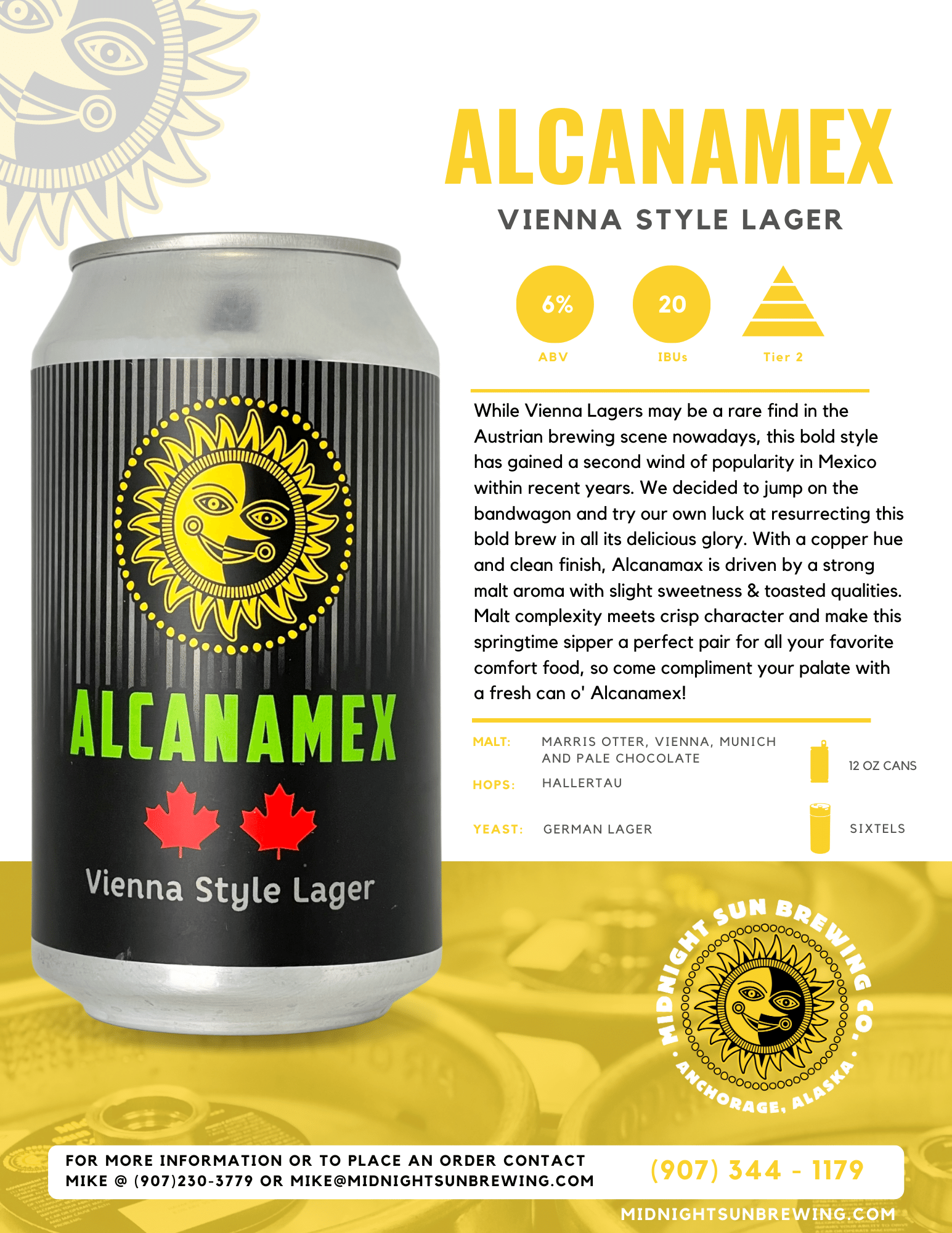 While Vienna Lagers may be a rare find in the Austrian brewing scene nowadays, this bold style has gained a second wind of popularity in Mexico within recent years. We decided to jump on the bandwagon and try our own luck at resurrecting this bold brew in all its delicious glory. With a copper hue and clean finish, Alcanamax is driven by a strong malt aroma with slight sweetness & toasted qualities. Malt complexity meets crisp character and make this springtime sipper a perfect pair for all your favorite comfort food, so come compliment your palate with a fresh can o’ Alcanamex!