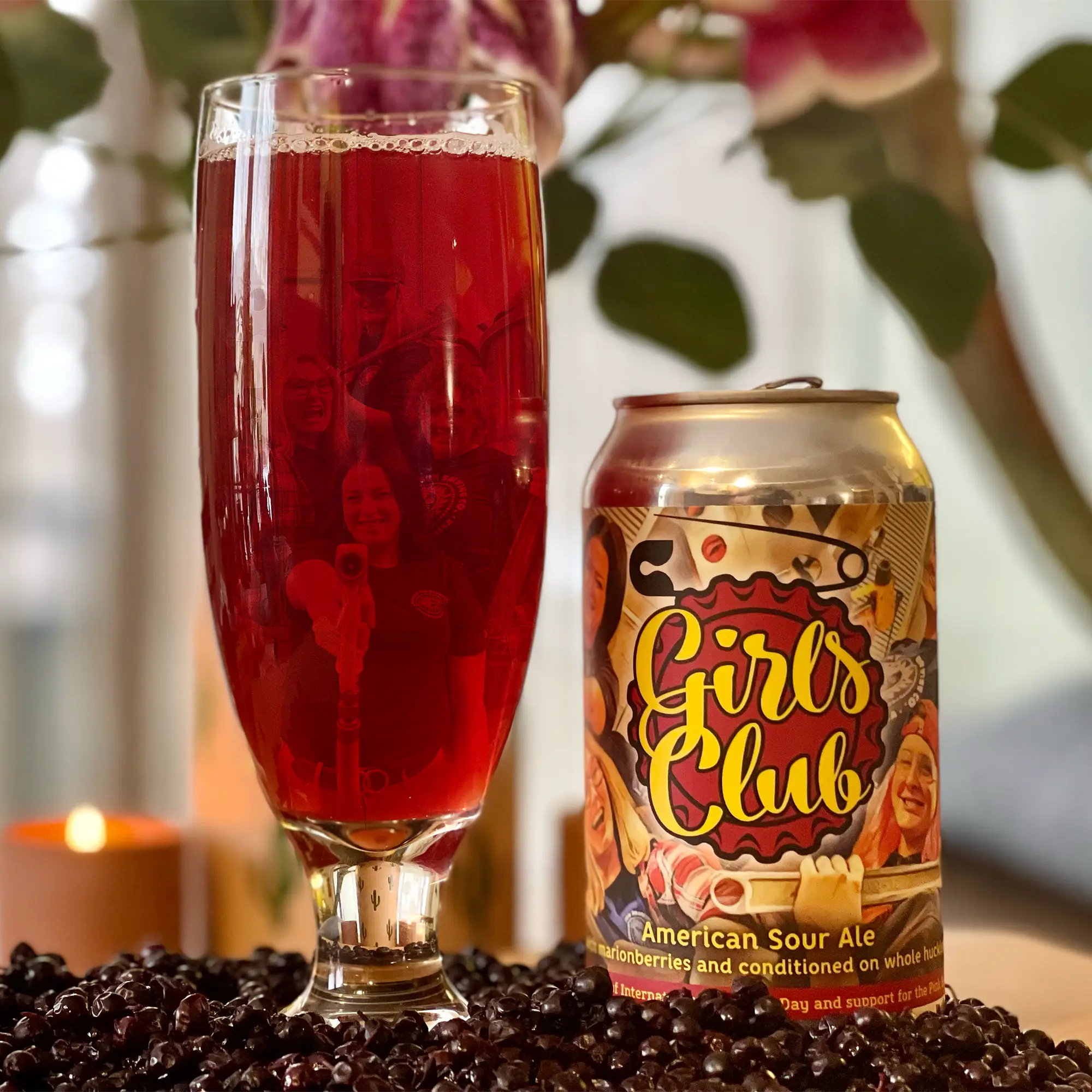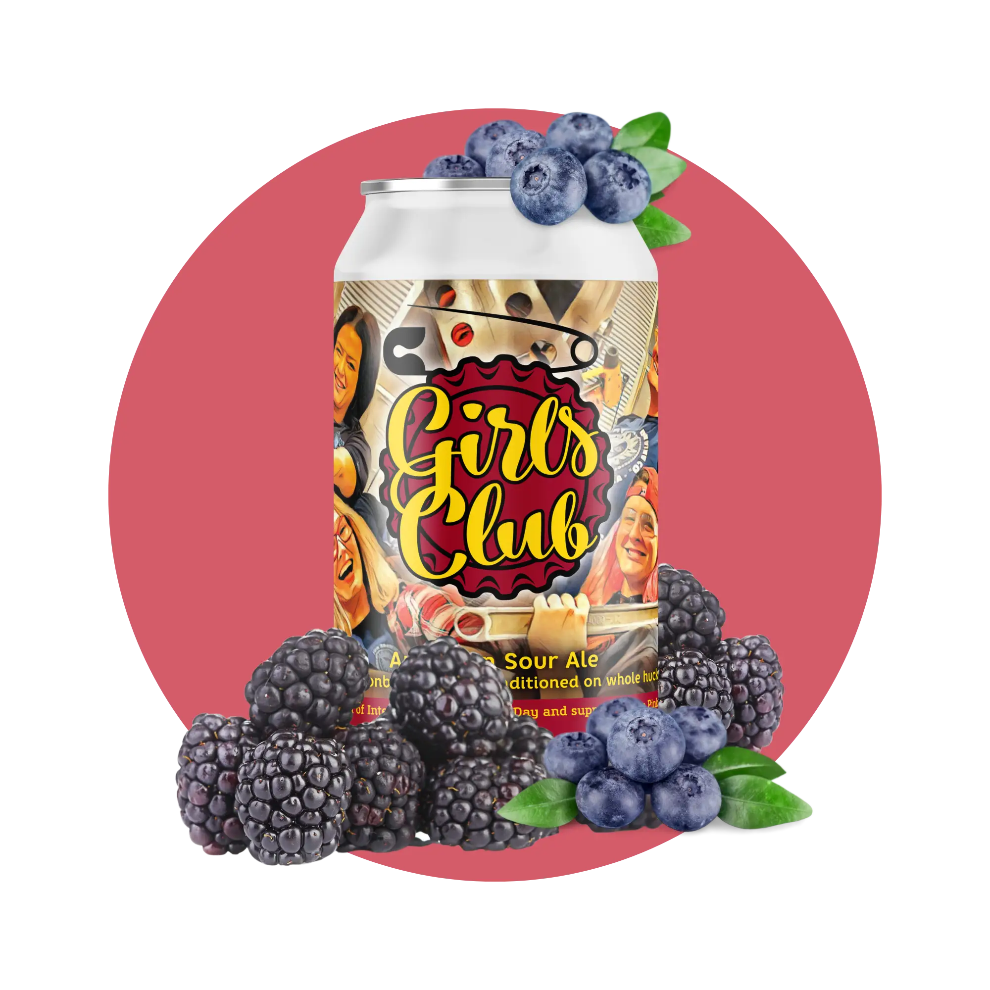 This year’s Girl’s Club was brewed with marionberries, huckleberries, and some good ol’ fashioned girl power. We started this ambitious ale off with a whole lot of wheat and a “quick souring” process. Once the perfect Ph was achieved and our house Belgian strain was added to the mix, we worked in Aseptic Marion Berry puree at about 70% attenuation to allow enough active yeast to ferment some of the sugars and prevent an overly sweet sour. Everything was then filtered and conditioned onto whole Huckleberries, leaving behind a perfectly tart sour to sip in the sunshine!